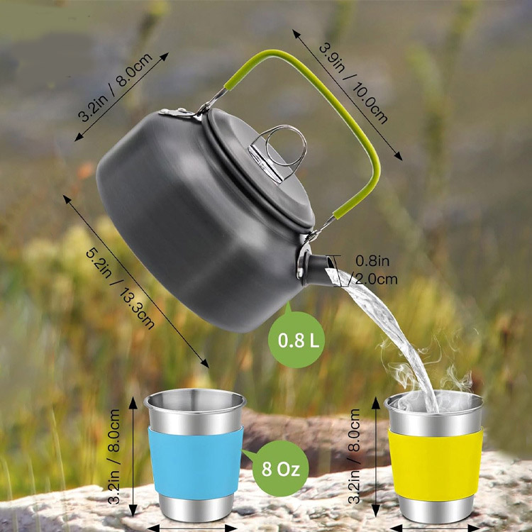 Tillverkad av förstklassig aluminiumlegering med giftfria beläggningar, säkerställer kokkärlet en jämn värmefördelning och motstår matlagning vid lägereld samtidigt som den förblir säker för matlagning.