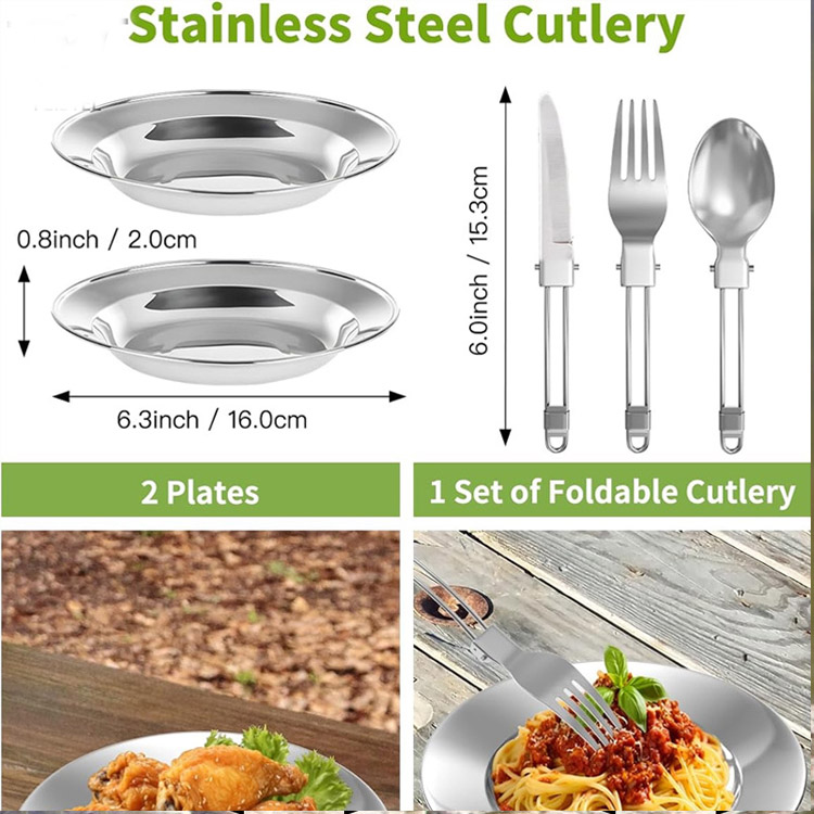 Detta omfattande kit innehåller allt som behövs för utomhusmåltider: kastruller, stekpannor, koppar, tallrikar, gafflar, knivar och skedar - ger en komplett kökslösning för campingäventyr.