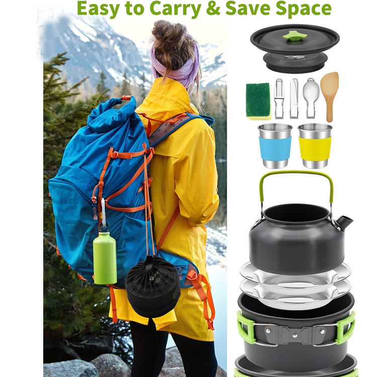 16st Camping Köksredskap, Camping Matlagning Set Camping Pot.Din kompletta Utekökslösning. Denna 16-delade campingkokkärl innehåller grytor, kastruller, koppar, tallrikar och bestick. Designad för omfattande campingmåltider och ger allt som behövs för matlagning och middagar i vildmarken.