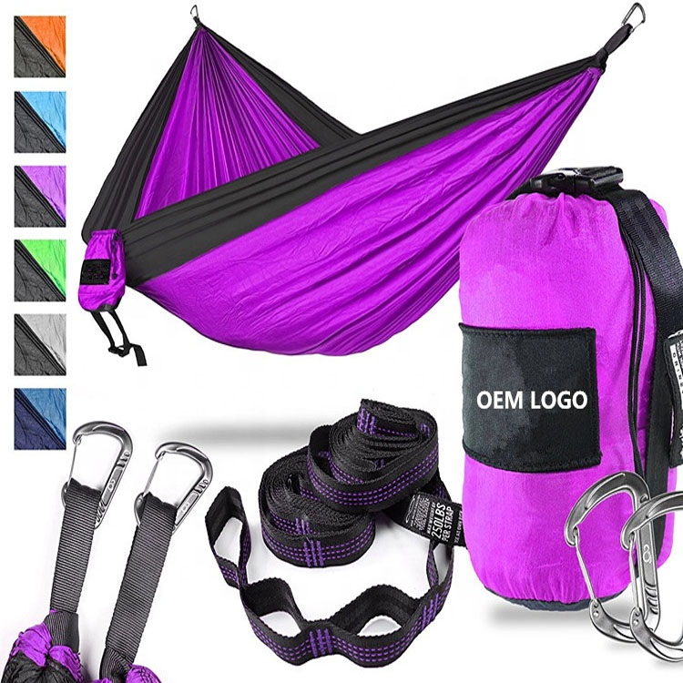 Backpacking Resor Dubbel fallskärm Camping Hängmatta. Ditt premiumval för utomhuskomfort och äventyr. Denna högkvalitativa fallskärmshängmatta är konstruerad för både enstaka och dubbelrum. Perfekt för ryggsäcksresor och resor, den kombinerar hållbara material med överlägsen bärbarhet för oförglömliga utomhusupplevelser.