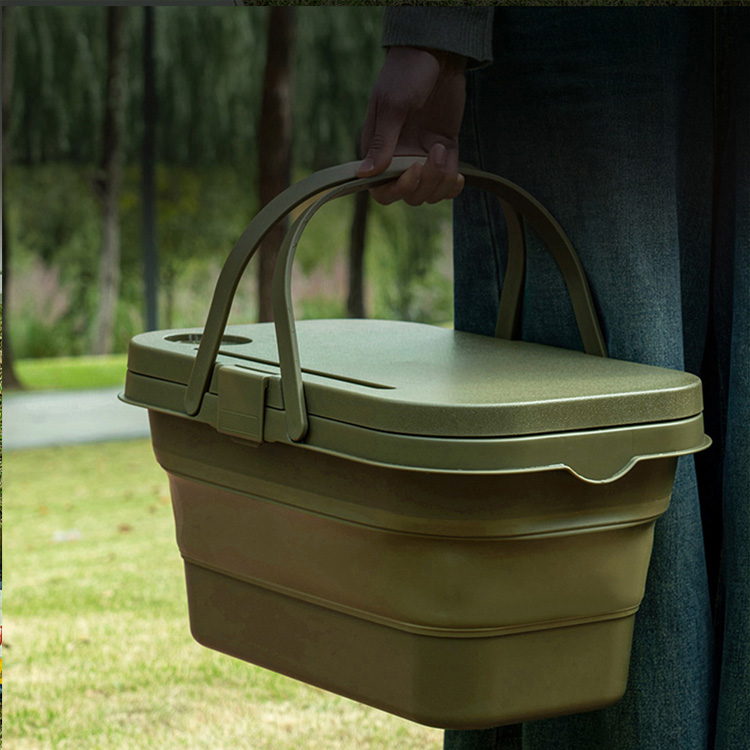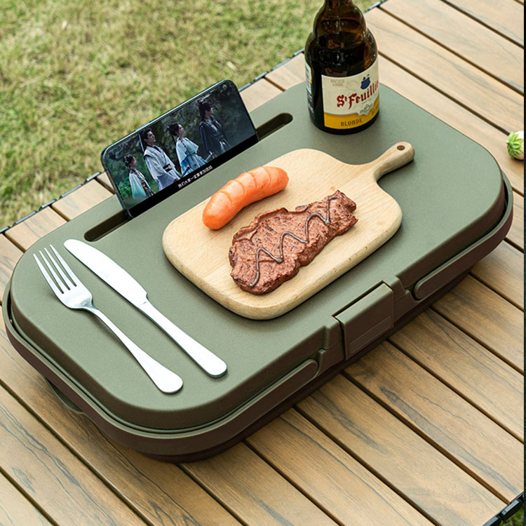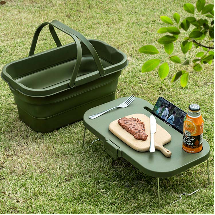 Denna innovativa korg förvandlas från en djup förvaringsbehållare till en platt, stabil bordsyta på några sekunder, vilket ger både organiserad förvaring och en bekväm serverings-/ätplattform för utomhusaktiviteter.