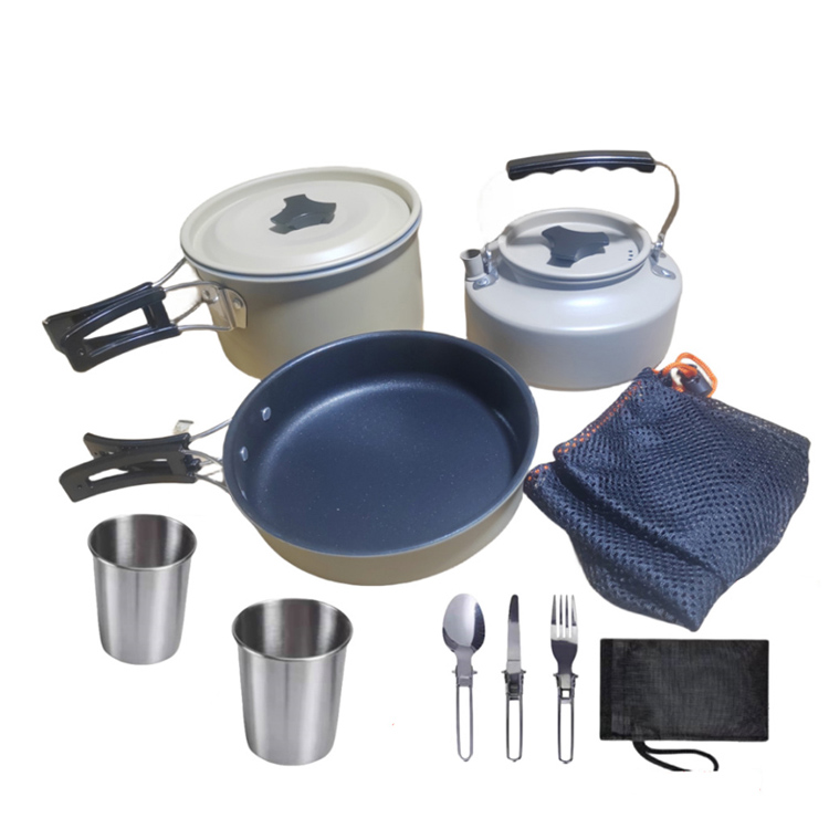 Camping Köksredskap Set med Vattenkokare Portable Cooking Pot Set