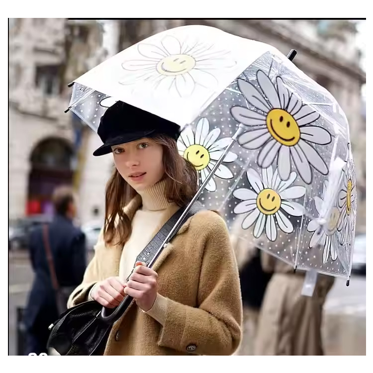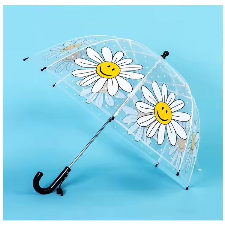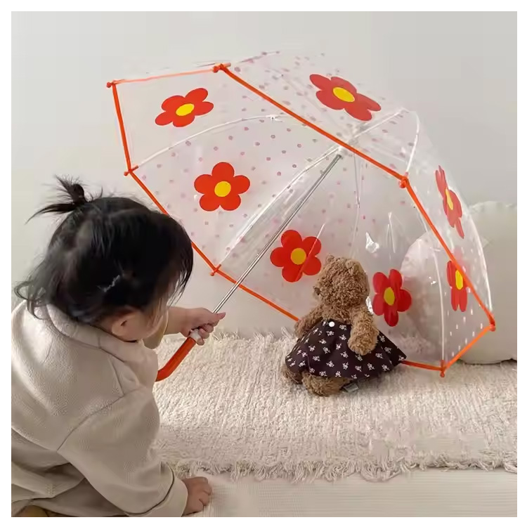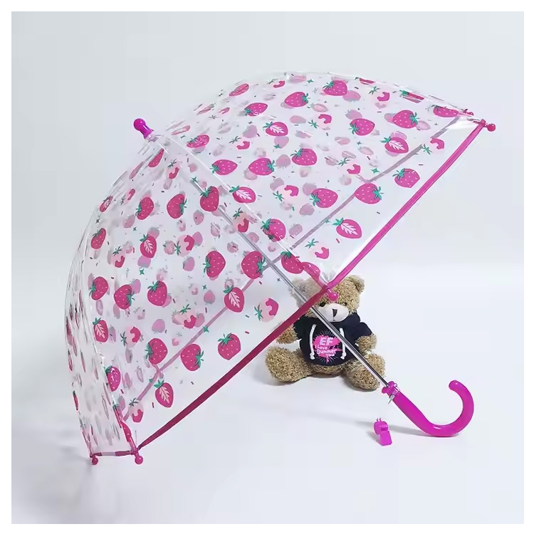 Täckt i ljusa och lekfulla enhörnings- och regnbågstryck, fångar detta paraply omedelbart barns uppmärksamhet. Dess genomskinliga kapell låter barn se vart de är på väg samtidigt som de förblir skyddade – vilket ger kul och magi till varje regnig dag.