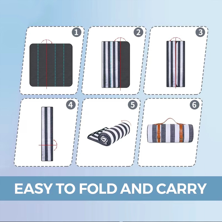 Vikbar randig Slitstark vattentät picknickmattafilt. Din främsta utomhuskompis för picknick och äventyr. Denna fabriksdirekta picknickmatta har en kompakt hopfällbar design med bekvämt bärhandtag. Tillverkad med randigt slitstarkt vattentätt tyg, erbjuder den anpassade utskriftsalternativ för grossistkunder.