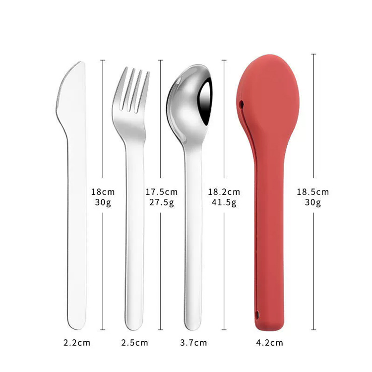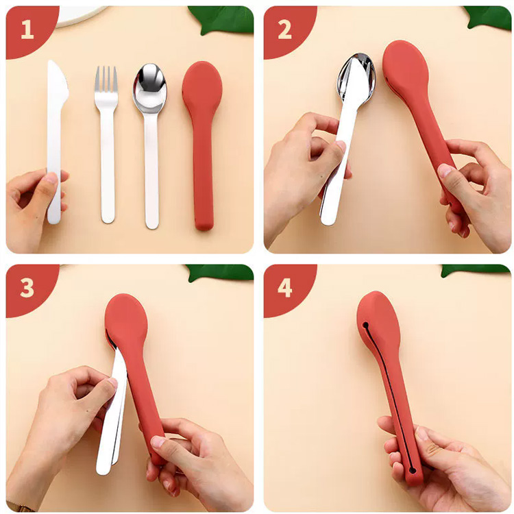 Högkvalitativ campingresebestickset Silikon Portable.Your Premier Dining Companion for Outdoor Adventures. Detta högkvalitativa bestickset har slitstarkt bestick i rostfritt stål i ett skyddande silikonfodral. Perfekt för camping, resor och picknick, det garanterar elegant och hygienisk middag var som helst.
