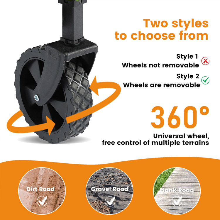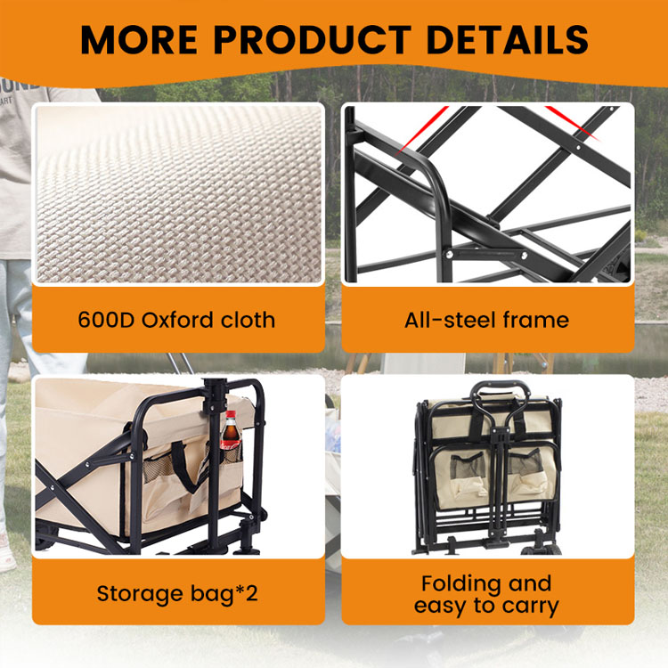 Byggd med förstärkt järnram och rostskyddsbeläggning, bibehåller den här bruksvagnen exceptionell hållbarhet samtidigt som den stöder laster upp till 150 kg, vilket ger pålitlig prestanda i olika terränger.