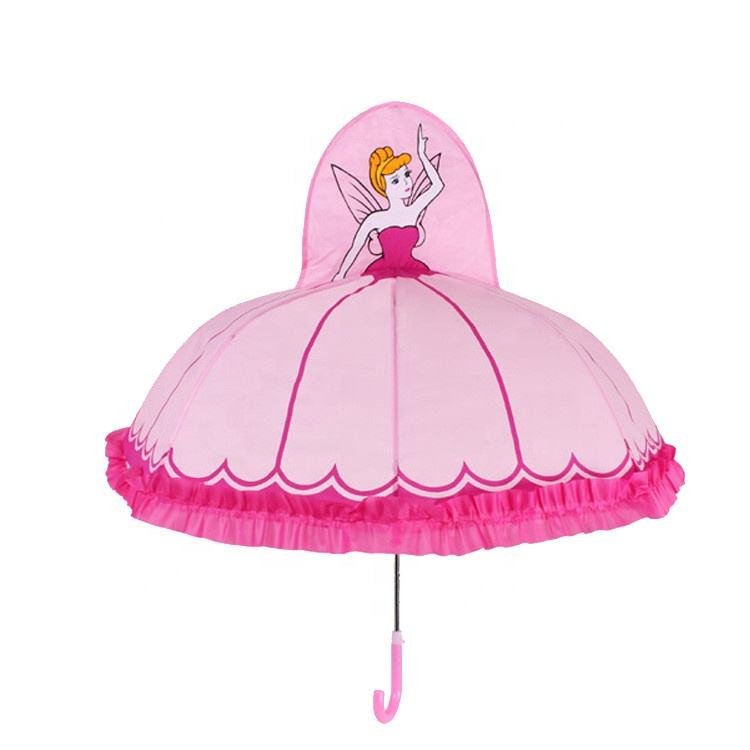 Manuell karaktär Anpassa barn 3D tecknat paraply för barn. Populär rea Söt katt, räv, prinsessa och tecknad figurdesign Barns 3D paraply har en 17''\*8K manuell rak ram. Den är rolig och funktionell och erbjuder anpassningsalternativ, vilket gör regniga dagar lekfulla och eleganta för barn i alla åldrar.