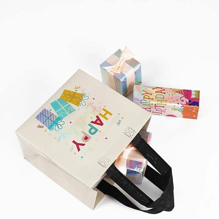 ✅Livlig och festlig design – Varje födelsedagsväska är vackert tryckt med färgglada presentförpackningsmönster och glad "Happy Birthday"-text, som omedelbart lyser upp alla festscen och får dina presenter att sticka ut.