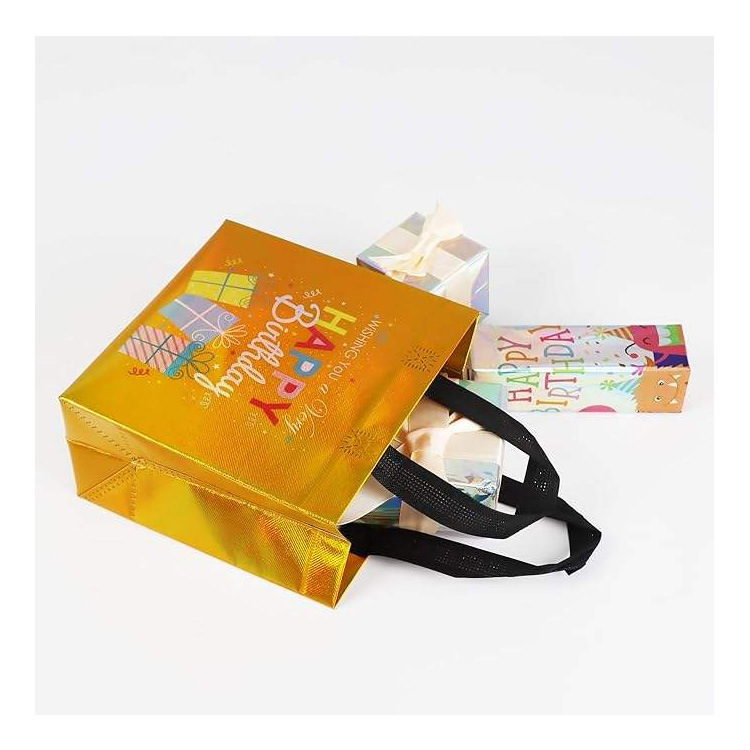 Färgkoordinerade icke-vävda födelsedagsväskor i flera storlekar. Färgkoordinerade icke-vävda födelsedagsväskor i flera storlekar har livfull design, robusta handtag och matchande etiketter, perfekt för festfavoriter, presenter och dekorationer, ger en festlig touch till alla fester samtidigt som de erbjuder en återanvändbar praktisk förpackningslösning och miljövänligt.