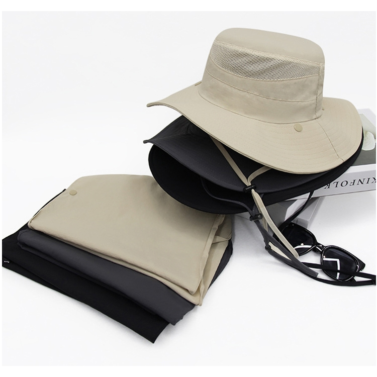 Multifunktionell utomhus sommarkylningshinkhatt snabbtorkande. Din ultimata utomhuskompanjon för alla väder. Denna multifunktionella bucket-hatt har avancerad sommarkylningsteknik och snabbtorkande vattentätt tyg. Med UPF 50+ solskydd och avtagbar gardin ger den fullständig täckning för olika aktiviteter.