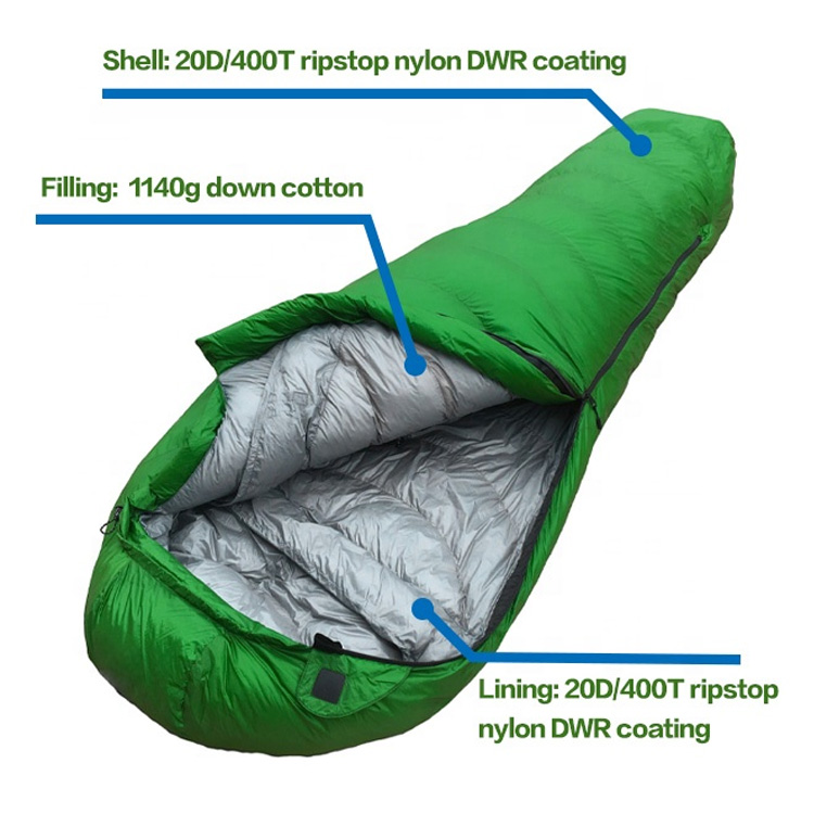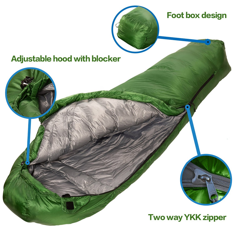 Utomhus Ultralätt Bärbar Mumiesovsäck för kallt väder. Din ultimata sömnlösning för kallt väder för vildmarksäventyr. Denna ultralätta mammasovsäck har förstklassig isolering av ankgåsdun för maximal värme. Designad för seriös camping, den kombinerar exceptionell termisk effektivitet med minimal packvikt.