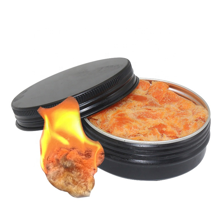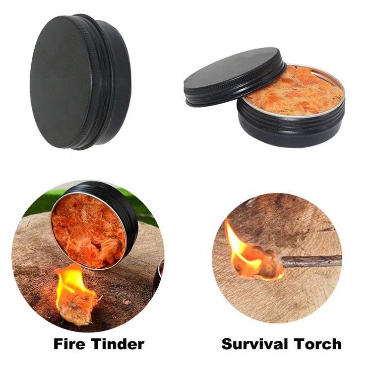 Utomhusutrustning Emergency Quick Tinder vaxad bomullsbrandslam. Din ultimata pålitliga brandstartande lösning för utomhusäventyr. Denna nödsnabbtinder har specialvaxad bomull och brandlera. Designad för överlevnadssituationer, säkerställer den snabb antändning även i våta förhållanden under vandring och camping.