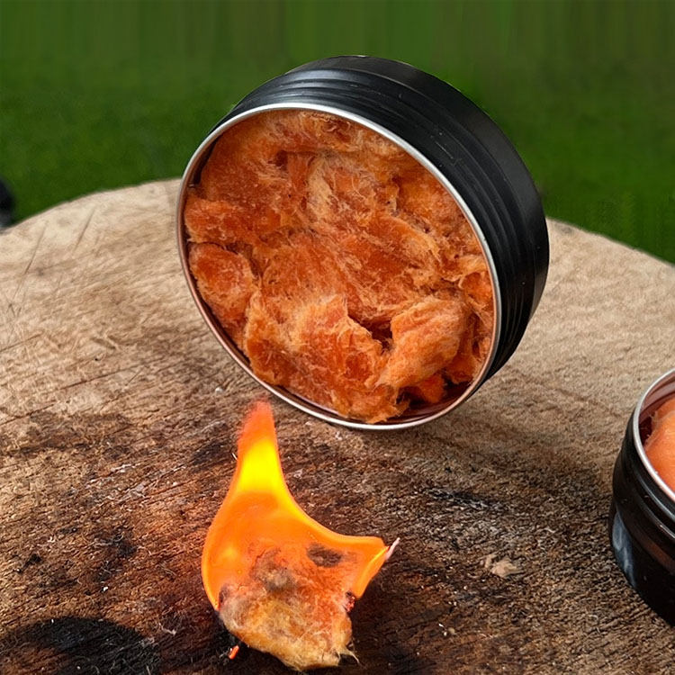 Speciellt formulerad med vattentätt vax och mineralbaserad brandlera, uppnår denna tinder snabb antändning även när den utsätts för regn, snö eller hög luftfuktighet, vilket säkerställer en pålitlig brand som startar i kritiska överlevnadssituationer.