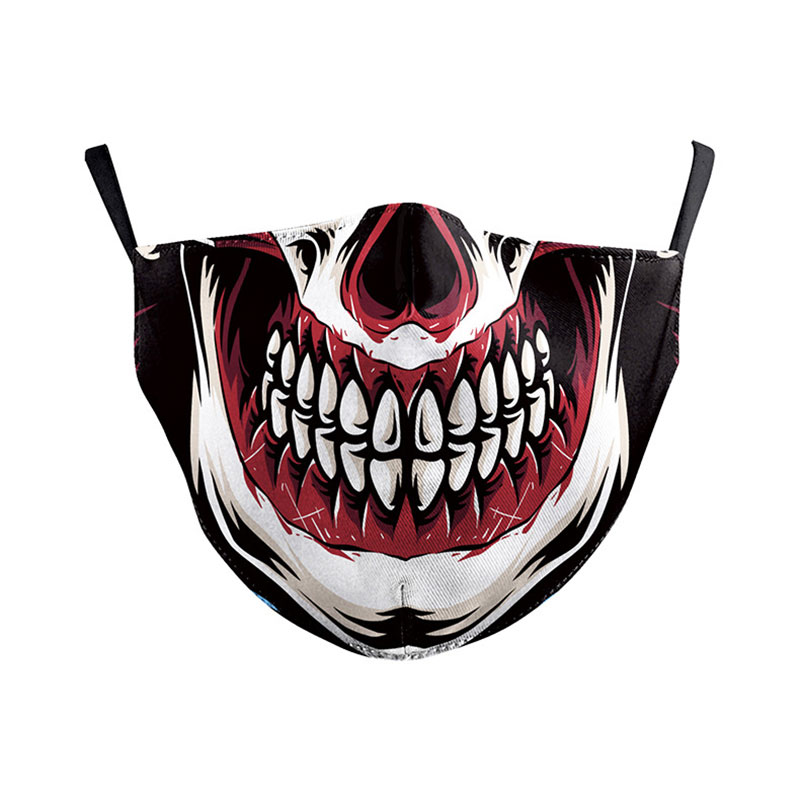 1. Skalldesign för cosplay Halloween. 1. Mycket bekväm och lätt att bära, andas tvättbar och återanvändbar 2. Dessa ansiktsmundskydd för mode är idealiska för kvinnor och män, lämpliga för cykling, camping, löpning, resor, klättring och daglig användning.