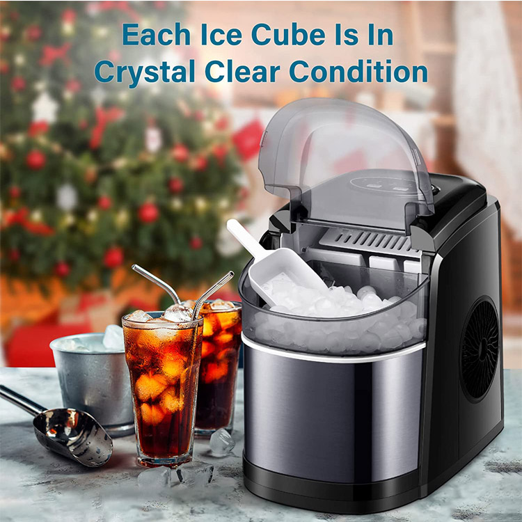 · Ny uppgraderad ismaskin:Med ny uppgraderingded kompressor, modell HZB-12/C ismaskin tar bara 5-8 minuter att göra 9 bitar av isbitar, producera 26.5lbs. isbitar på 24 timmar, denna ismaskin kommer att vara en perfekt ersättning för det gamla kylskåpet i ditt hem.