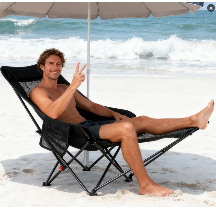 Det inbyggda, flerdelade benstödet sträcker sig utan ansträngning för att ge fullt stöd för underkroppen, vilket avsevärt förbättrar cirkulationen och komforten under längre perioder av avkoppling utomhus.