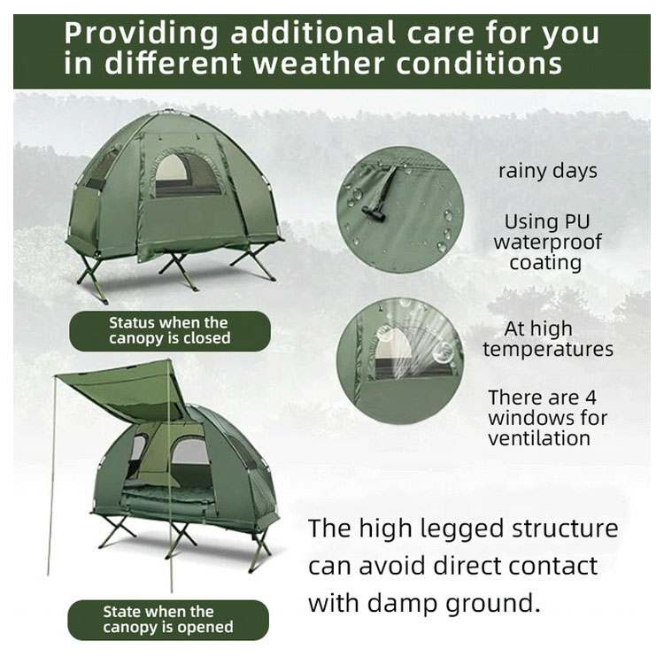 Ultralätt enkeltält för utomhuscamping Vattentätt Oxford. Ditt ultimata familjeskydd för utomhusäventyr. Detta ultralätta enkeltält kombinerar vattentätt Oxford-tyg med avancerad regntät teknologi. Den integrerade fuktsäkra hopfällbara sängen säkerställer fullständig komfort och skydd under campingresor.