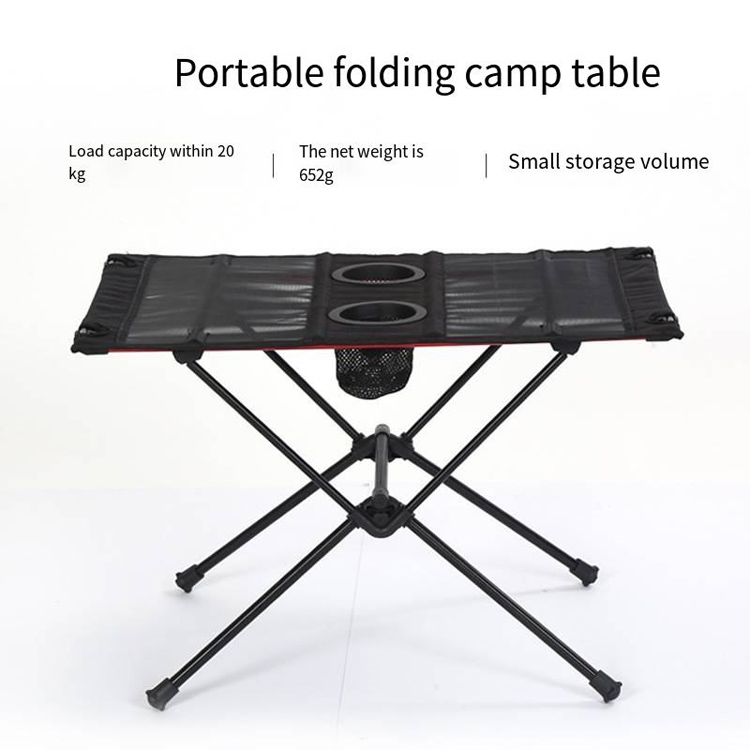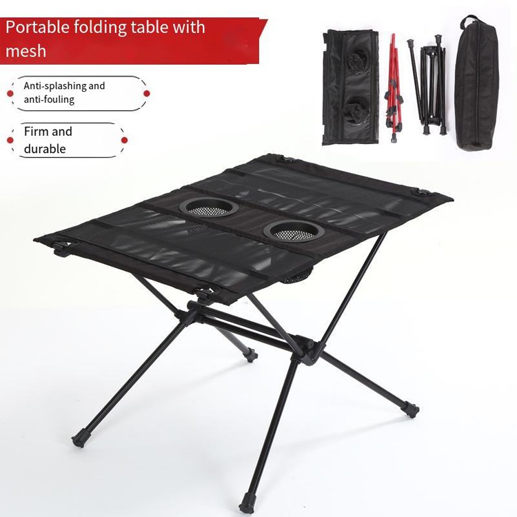 Ultralätt Campingbord Nylon Andas Mesh Fällbart bord. Din ultimata bärbara bordslösning för utomhusäventyr. Detta ultralätta campingbord har slitstark nylonkonstruktion med andningsbar nätyta och integrerad mugghållare. Den vikbara designen säkerställer maximal portabilitet för alla dina utomhusaktiviteter.